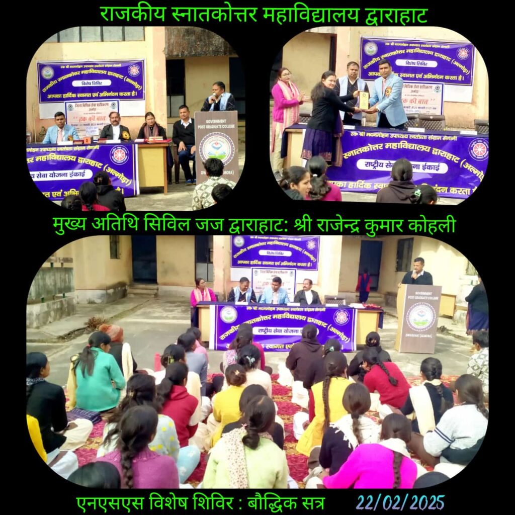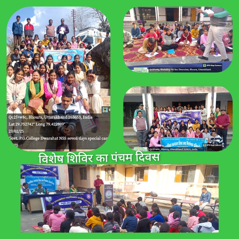 A 7-days special camp is organized every year in the month of December. 200 NSS volunteers participate in the camp. Physical project, working with children, information collection, awareness generation and cultural programs were the major assignments undertaken during the camp.